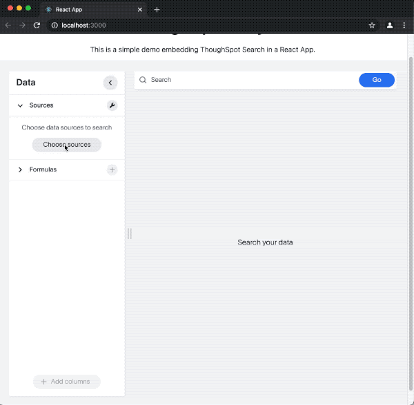 <p>This is a simple demo embedding ThoughSpot Search in a React App.</p>