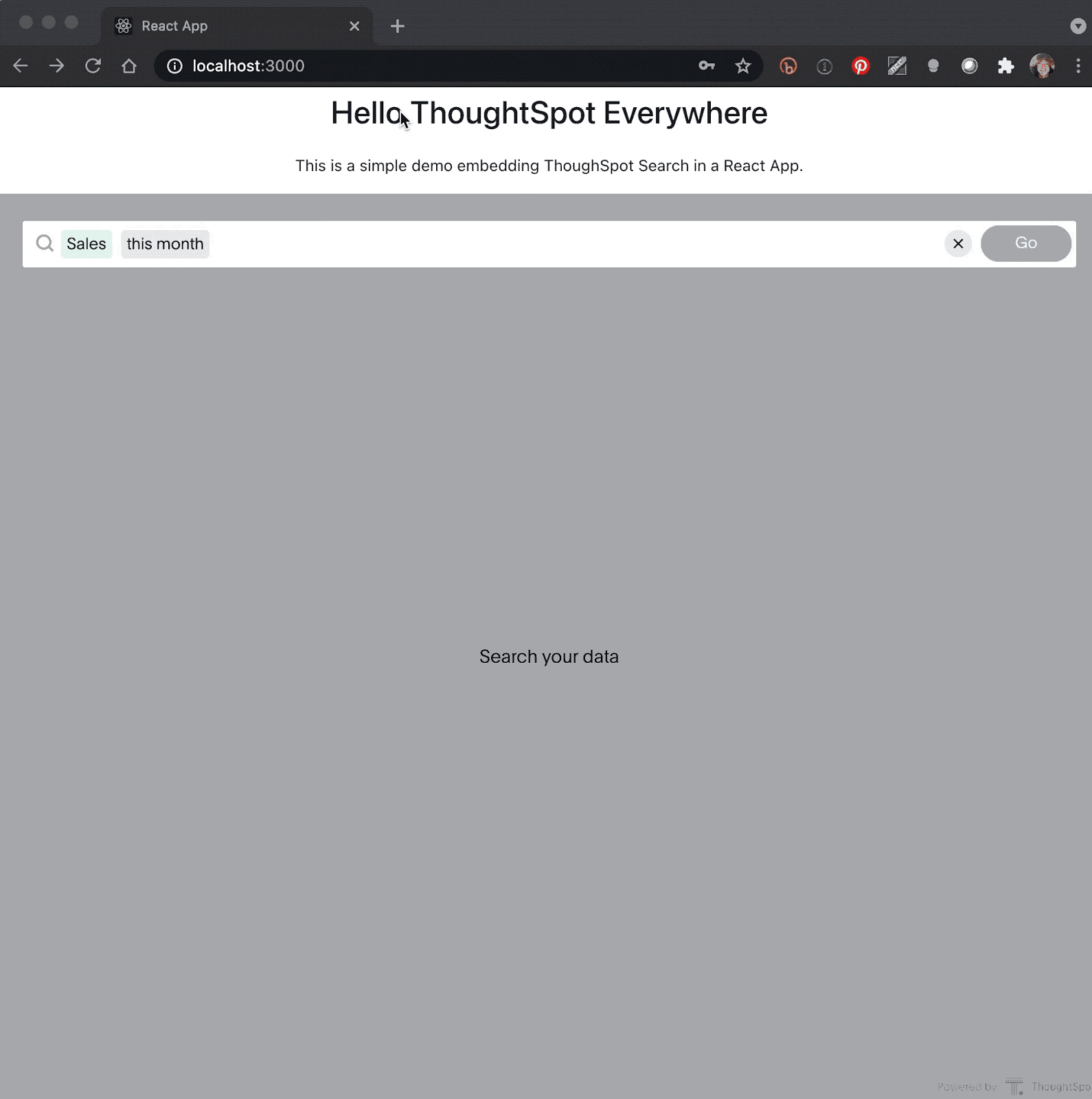 This page contains the ThoughtSpot Everywhere search component that will be included into our main app.