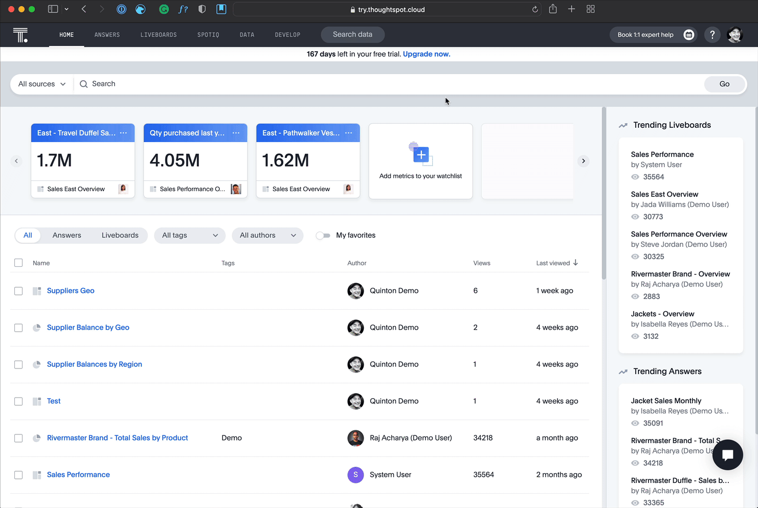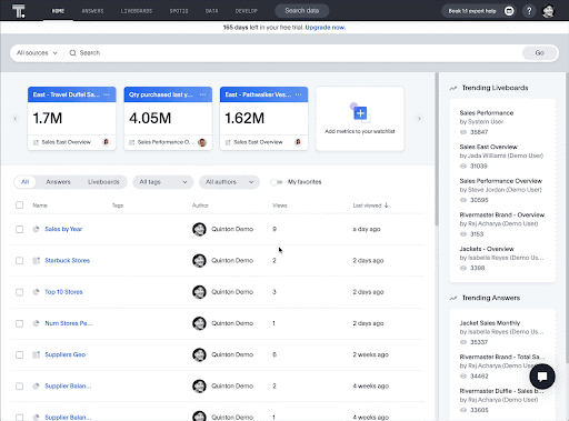 In this step, you have created your first answer. You can access this at any time via the Answers tab, or in the Liveboard you created.