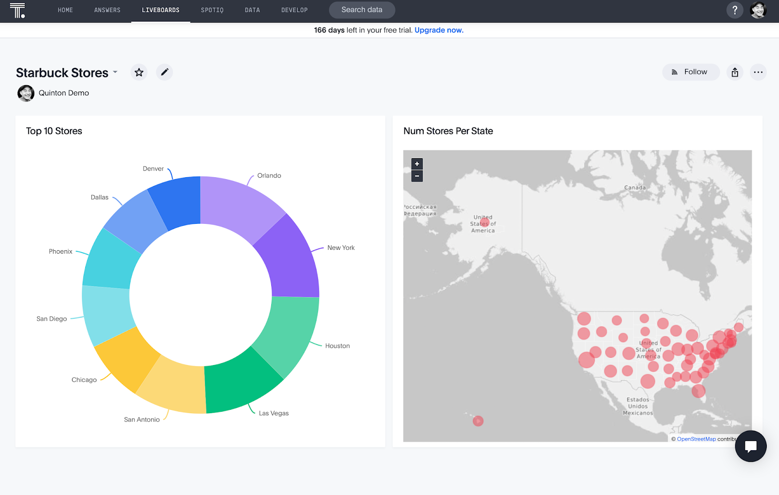 Go ahead and Pin this answer and visualization to the Starbuck Stores Liveboard we created earlier.