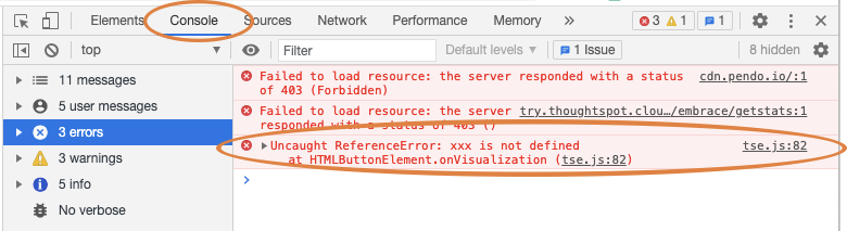 You can click on the filename and line, here it’s tse.js:82 and be taken to the code with the error: