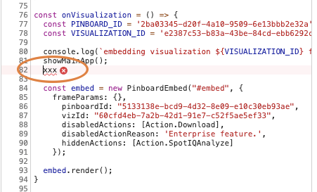 All of the steps so far have shown embedding with the default functionality. However, it’s often desired to give customers access to only some features and provide enhanced functionality based on licensing. In this section, you will disable and hide different features. Not all actions are covered here. See the ThoughtSpot documentation for the available options.