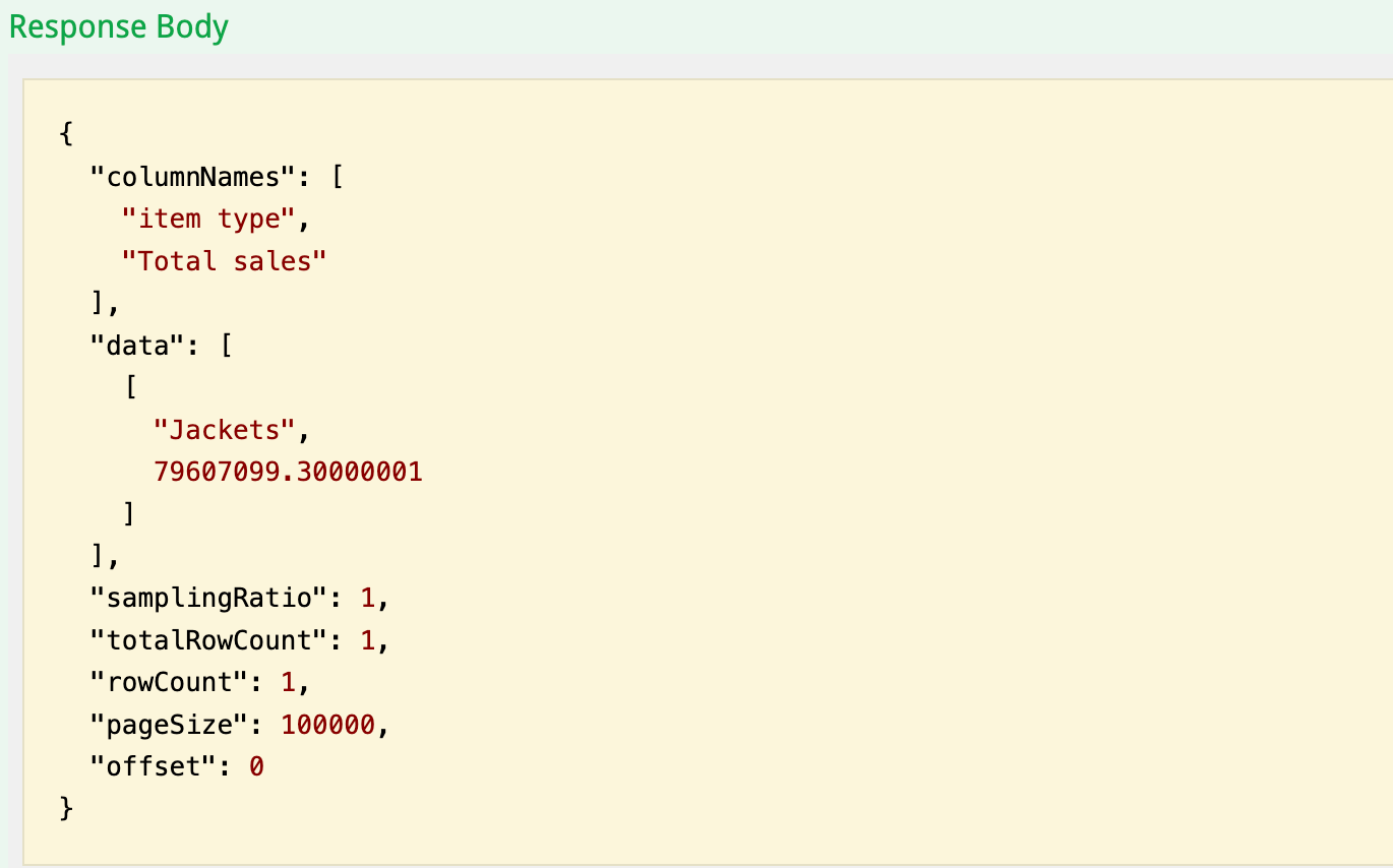 If successful, you will see the Response Body as a json payload. This is the data we will use to map to the D3 charts.