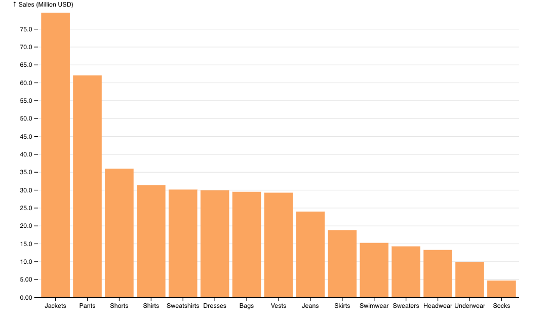 Our chart shows the number of sales for the top selling product, but it’s not that exciting. Let’s add a little color. Open src/index.css and replace the contents with the following css: